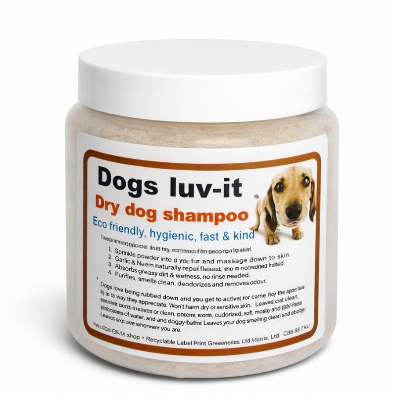500ml Tub – Waterless dog shampoo that absorbs odours and refreshes the coat without rinsing—perfect between washes.